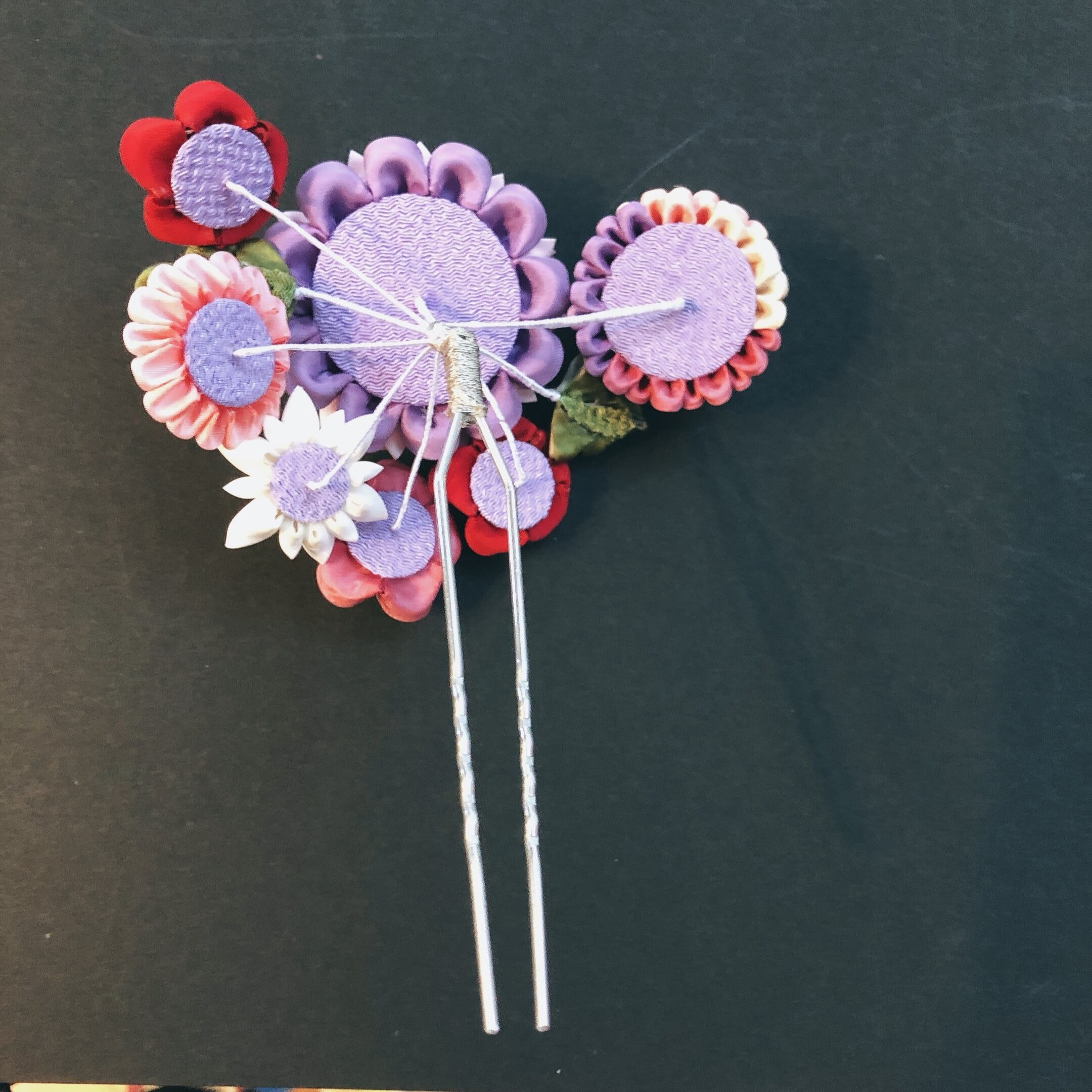 つまみ細工 晴れの日かんざし(華手毬)