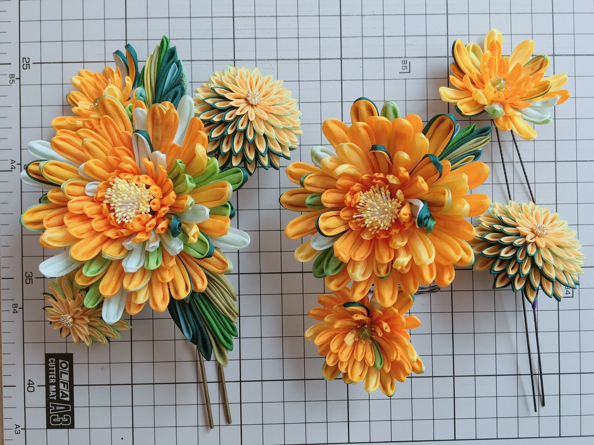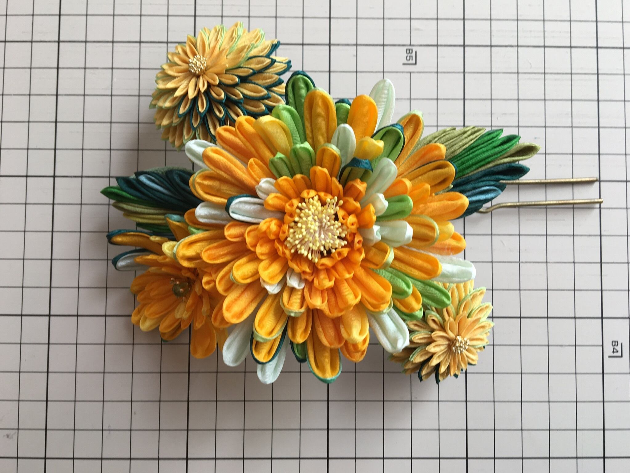 つまみ細工 成人式・結婚式用髪飾り(Dahlia黄望)