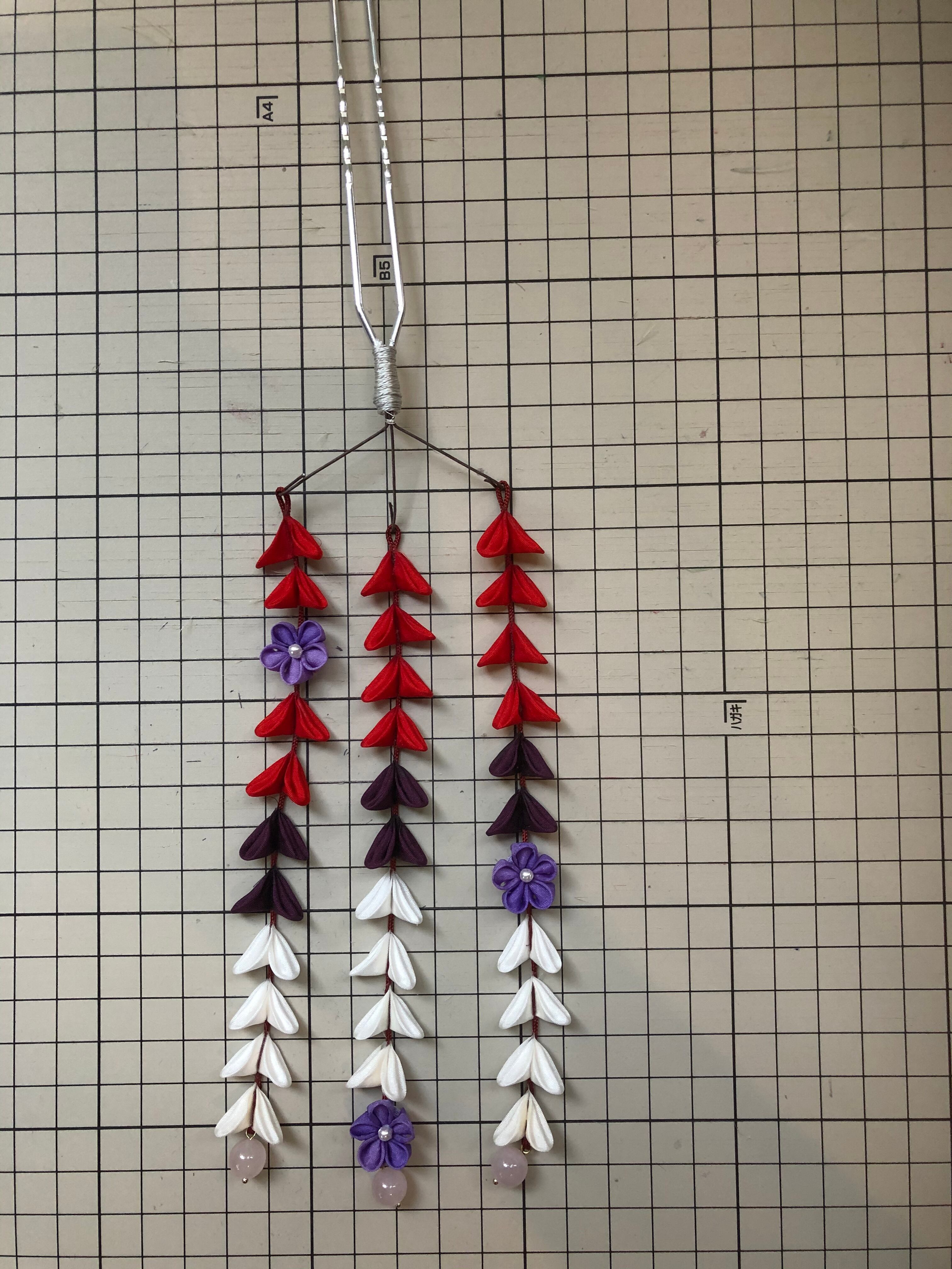 伝統の紅白に慶弔紫を混ぜた格式高い髪飾りです。