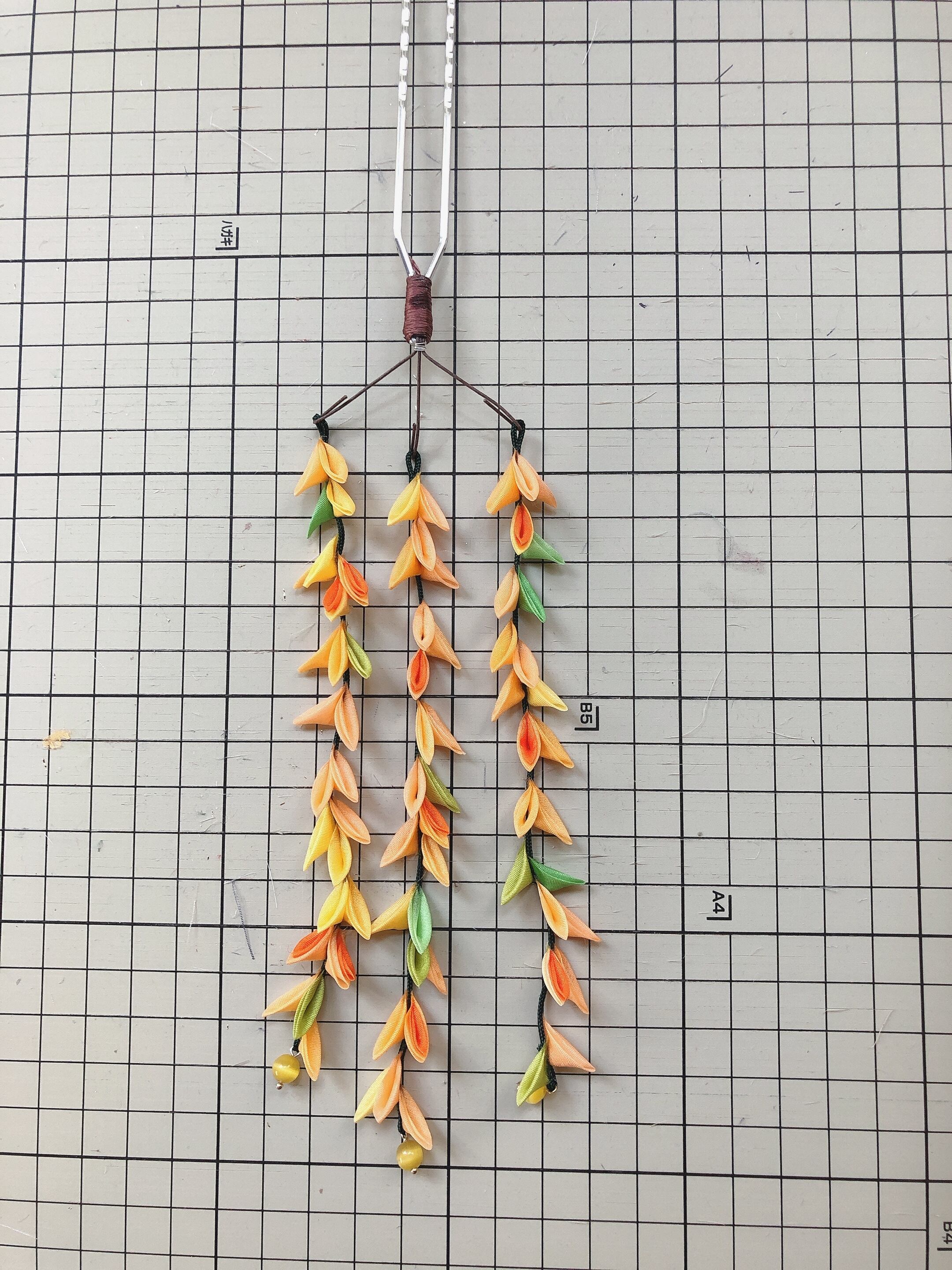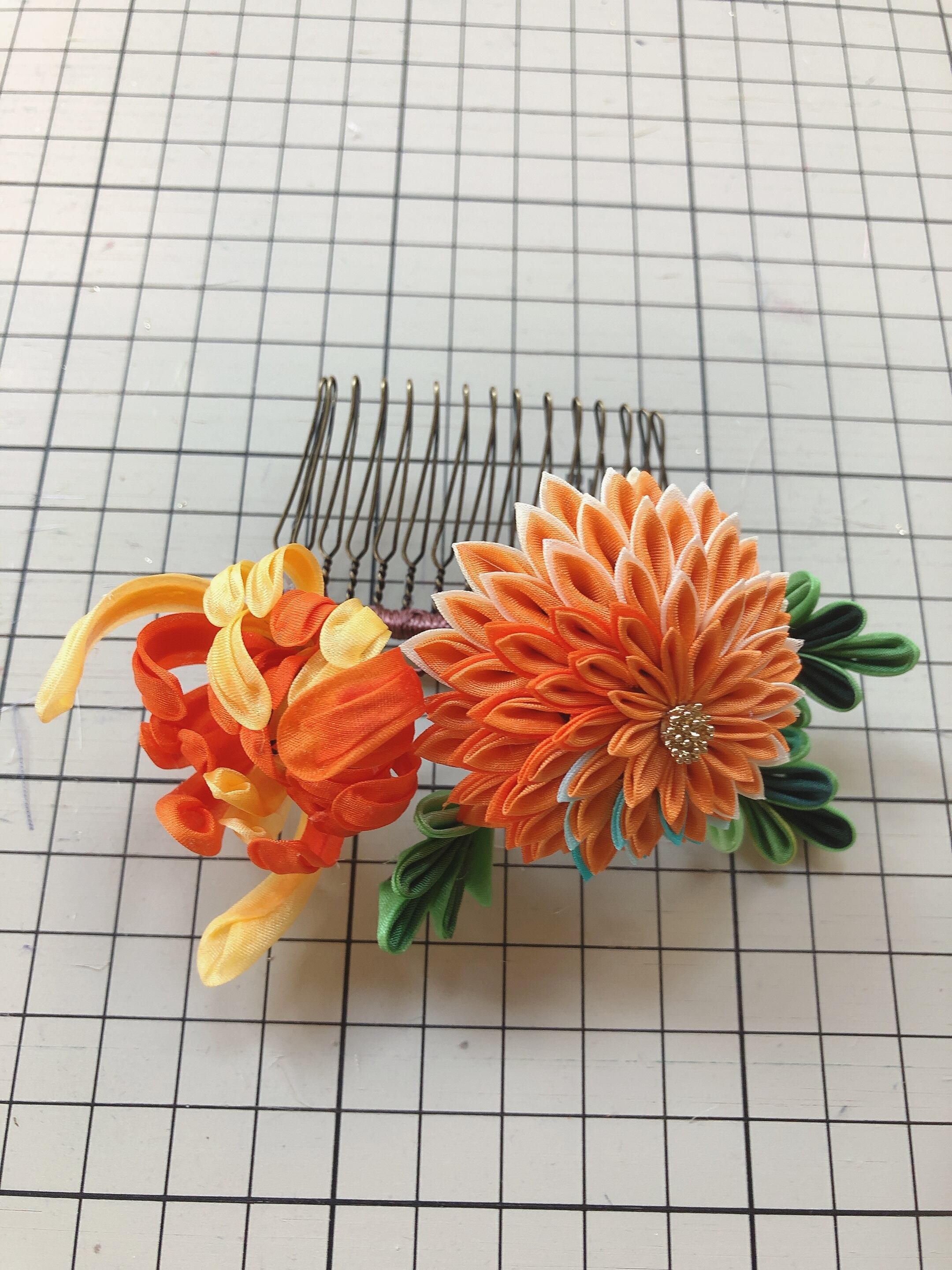 日本制の正絹羽二重で制作したつまみ細工の髪飾りです。